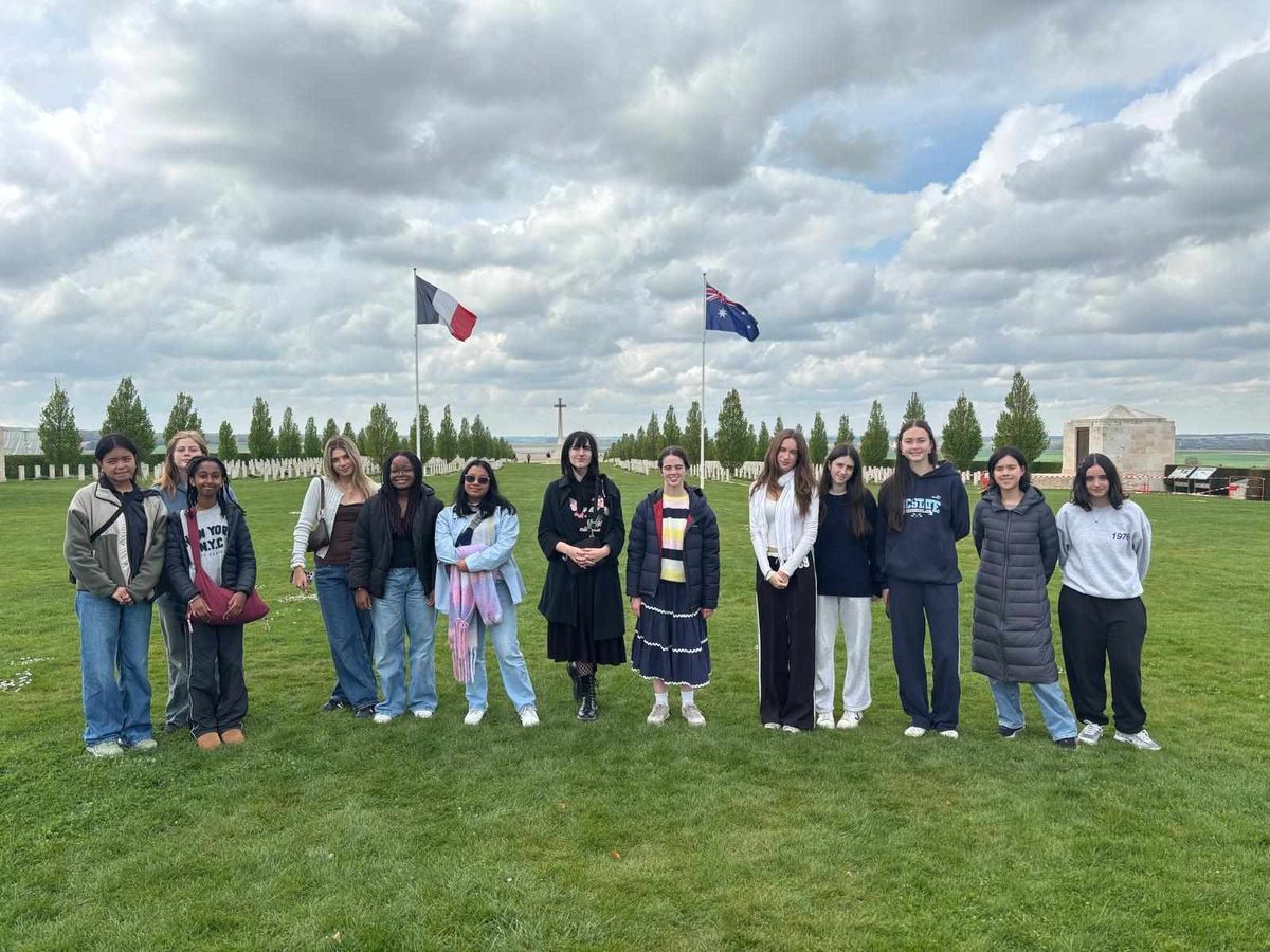 The first St Aloysius France Study Tour was a glowing success. Thirteen students and three staff spent a packed two weeks seeing many of the highlights of Paris and northern France. The itinerary was varied and had something for everyone: from historic churches and cathedrals, including Notre Dame de Paris which just reopened and Notre Dame de Rouen, to national monuments, such as the Pantheon, to magnificent springtime gardens in both Paris and Giverny, and unmissables such as going on the Tour Eiffel, we were dazzled by the beauty of France in wonderful weather. We also spent time reflecting on the sacrifices made by the ANZACs at Villers-Bretonneux, a little town which Australian soldiers helped defend against the Germans in 1918 and which still celebrates our contribution. There were fun activities such as team games in the Grand Rex cinema, and visiting MontMartre though a quest game. We tried many delicious foods, including crepes, boeuf bourguignon, and we had a workshop to make salted caramel macarons! We also visited a high school near Paris. The students gave us a tour of their campus and talked about their subjects, projects and holiday plans. We had lunch in their canteen, and they also took us on a walk to their local castle and gardens. It was a lovely, immersive and eye opening day of making friendships. The trip ended on a high: a day in Disneyland Paris. Everyone had a lot of fun on their rides, and we stayed for the night show on the castle. It was really exciting to finally be in those places that we have been talking about in class, or seeing in Emily in Paris!