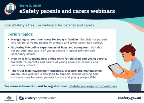 Regardless of the decade or generation, we know teenagers are keen to explore the world as independently as possible. As parents, staff and as a College community it is important to keep abreast of our young people’s online activity. A technology schedule or parent/teen contract can be a useful formality. The College has taken measures to increase the stringency of our Student ICT Policy to support Child Safety and no mobile phones are to be used on campus during school hours. I encourage parents to keep talking with their teens and access the webinars offered by the eSafety Commissioner. Please be diligent with gaming sites, an environment too often infiltrated by adults grooming young people, and contact the College if any disrespectful, racist, sexist commentary has occurred in student group chats involving St Aloysius students.