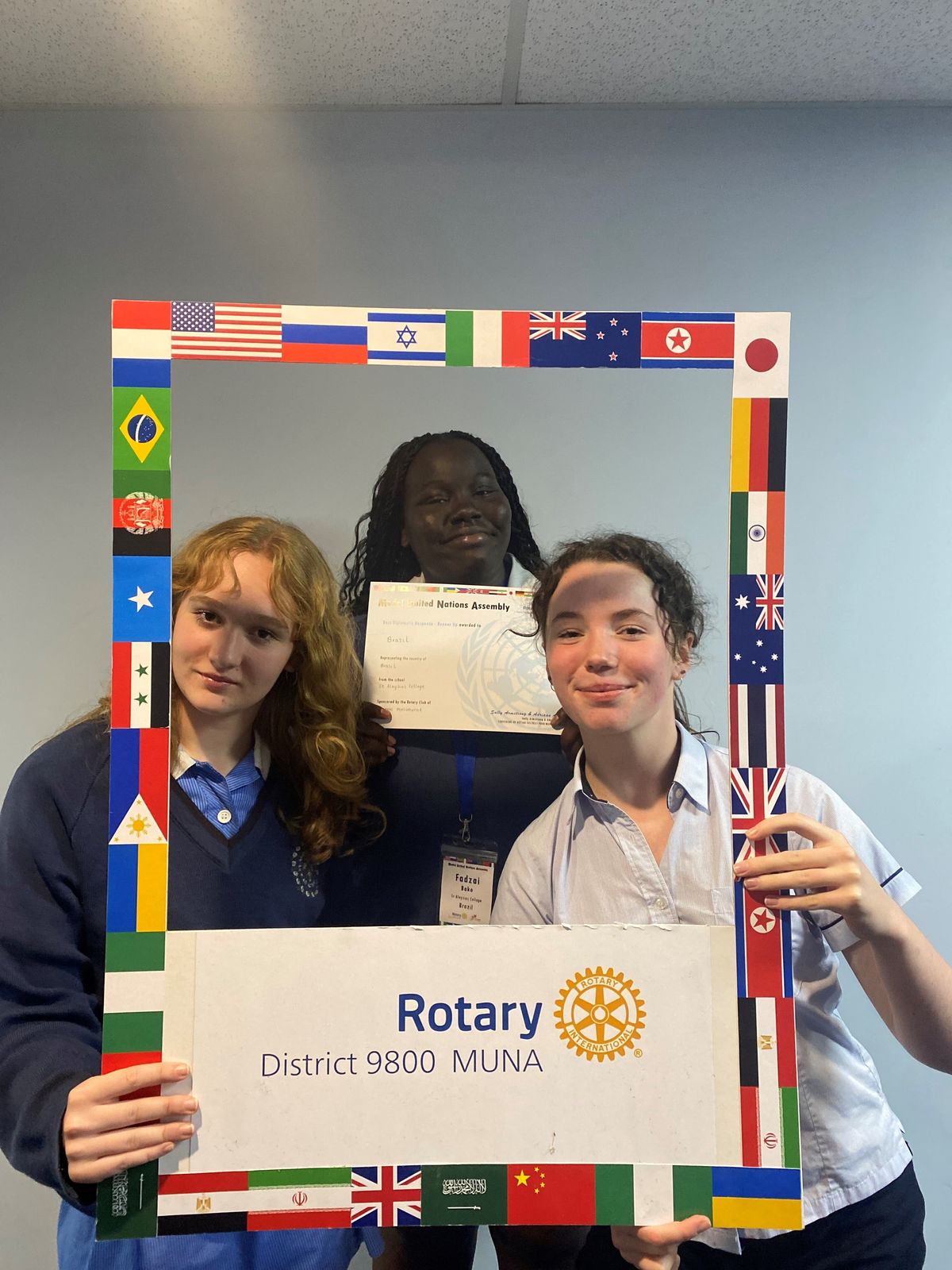 Additionally recently, Fadzai Bako (Year 11), Keona O’Brien and Nina Cutuli (Year 10), represented St Aloysius College at the Rotary Club of Woodend Model United Nations General Assembly. The two-day event took place across Saturday 24 and Sunday 25 May. The team took on the role as United Nations delegates from Brazil which involved responding to several ‘mock’ United Nations resolutions on trade, national security, regional borders, humanitarian concerns and an unknown ‘emergency crisis’, which in this case was a disease control epidemic of measles.