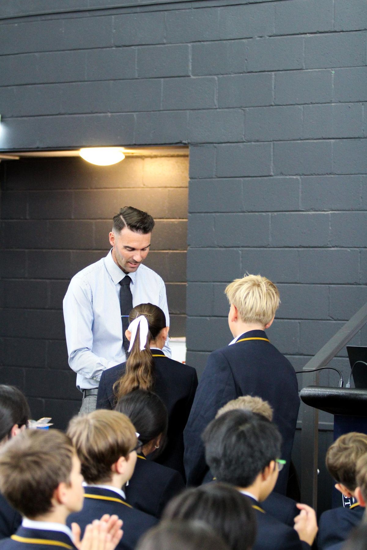 This week we had our first junior school assembly! This week’s focus was on the junior school leadership team with badge presentations of class co-captain and house leader. The Year 7s received their Year 7 badges, and we also focused on our St Aloysius school policies including our Uniform, ICT and Student wellbeing. The junior school assemblies include the Year 7s, 8s and 9s. We had staff present the badges who included Mr Miller, Miss Li, Miss Turner, Mr Needle and our school principal Ms Farah.