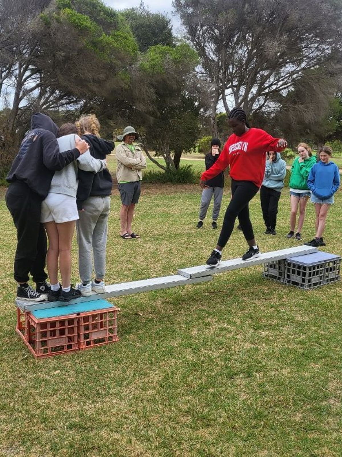 Today we went off to surfing. We learned all the techniques and caught some waves. We all had such a great time. After lunch, we were involved in lots of activities down by the river. We used teamwork to solve and complete some difficult tasks. After that we built a raft and raced against the other group. We came back and chill for a while. After our pizza dinner we had a trivia quiz and ended the evening with a movie.