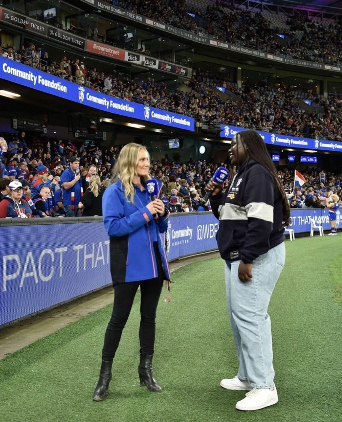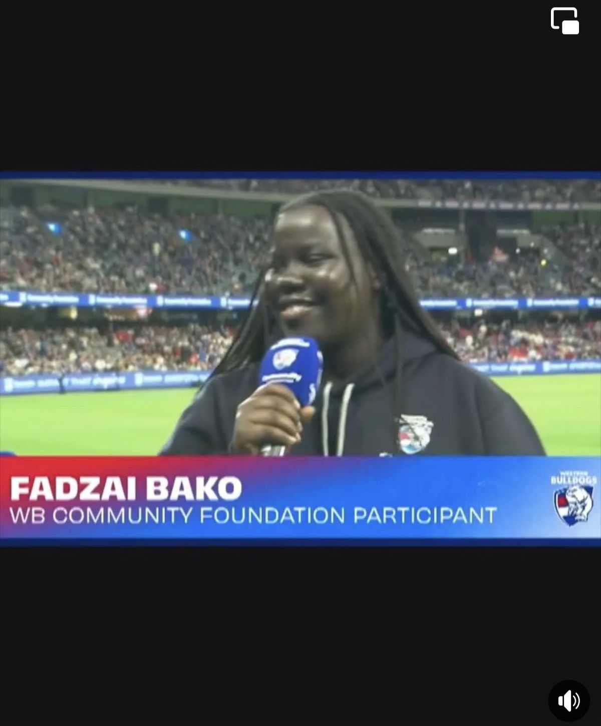 A big congratulations to Fadzai Bako from 9B who spoke at the St Kilda vs Western Bulldogs football match on Saturday 25th March. She spoke about her work with the Western Bulldogs Community Foundation and her participation with this inspirational foundation. She has completed the GOAL program which is a program for African Australian Youth where they come together and talk about the issues that they face in their day-to-day life. They get to make connections and form friendships with people with people in their community. She also participated in a Youth Leadership Program which is a program where young people come together to organise a project that helps them support people with issues in their community. Her group created a project on how to reduce racial discrimination and prejudice in schools. Well done to Fadzai for her participation in such a worthwhile cause and being a spokes person and advocate for the program.