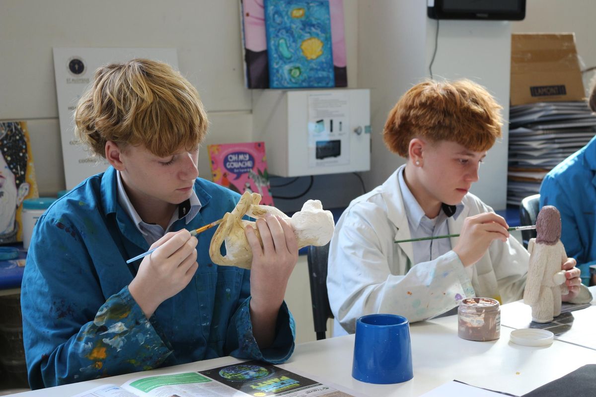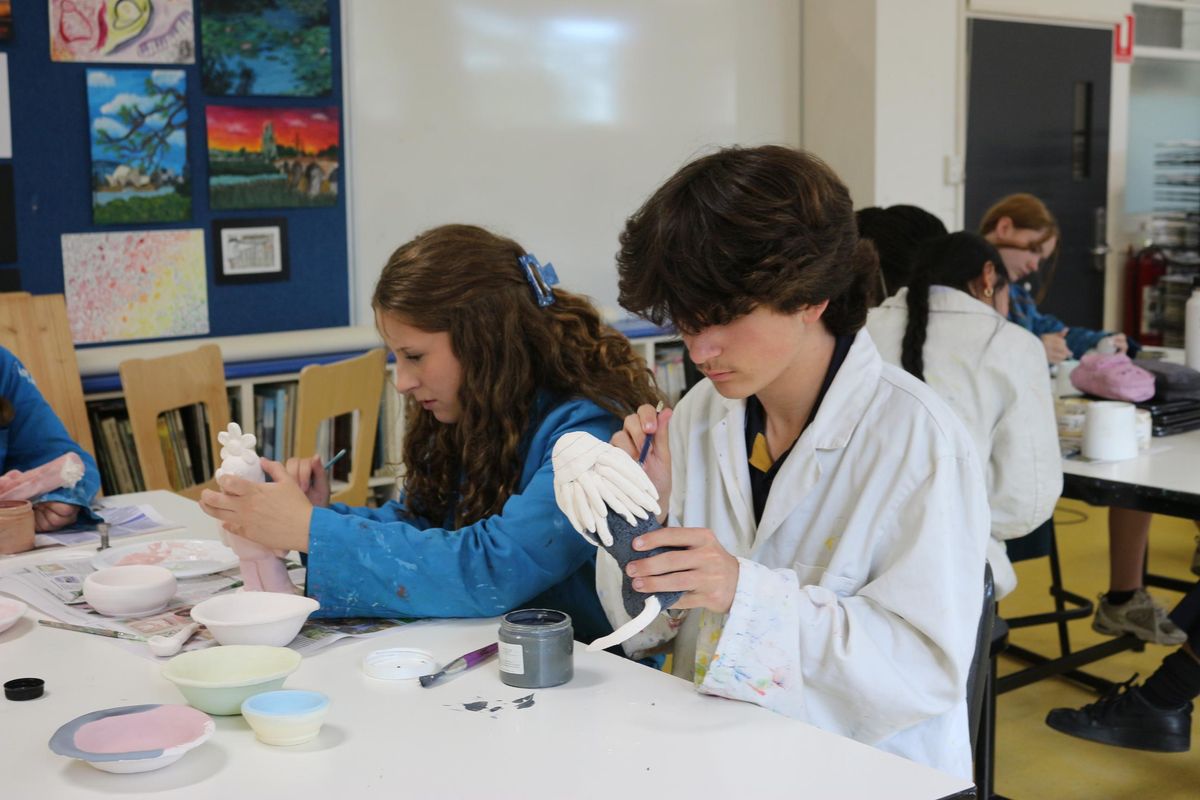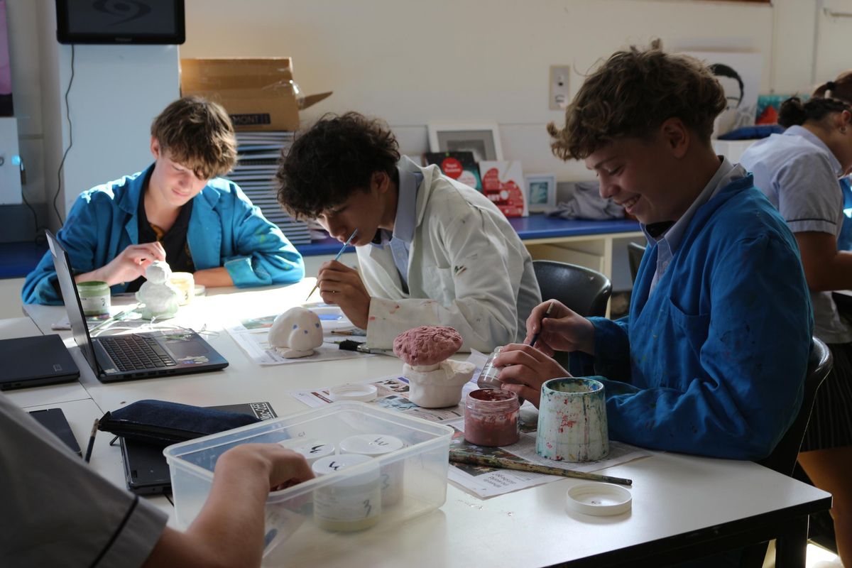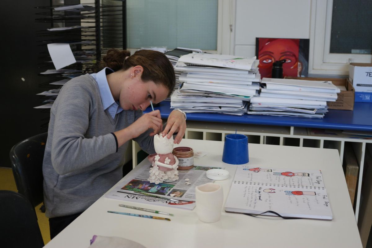 So far in Art 3D we have been able to learn about an artist named Vipoo Srivilasa who is a Thai artist who creates sculptures, some key things he has in his pieces are repetition and the colours blue and gold, using some of his pieces as inspiration we were able to start sketching and coming up with an idea of what we want to create. Once we had completed our sketches and decided on our final design, we were able to start playing with clay and making a small draft before our final piece. Once we were happy, we got to finally start on our finished product making sure we hollowed out pieces as well as smoothing rough edges. Before we finished term 1, we got to be creative with clay with some people hopping on the pottery wheel, some making plates and bowls. Over the holidays, many of the Sculptures got placed in the kiln and fired ready for us to start painting on underglaze. Today in class we are able mix different colours trying to achieve what our designs were. We are having so much fun and can't wait to see how they turn out.