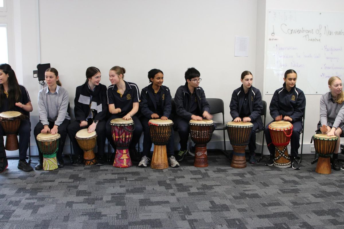 Throughout this year in French, I participated in multiple of the oportunities provided to us to participate in extra-curricular activities such as French Trivia, the Berth Mouchette Poem Competition, a written exam, and a dictation challenge. French Trivia was fun, we went to Sacre Cœur School in Glen Iris and were paired up with some of the girls there. We had trivia on many different topics regarding French culture, such as food, geography, art, and history. Everything there was in French, including the questions and possible answers, so it was a great experience to learn French or to be in a French-foccused environment. The poem and exam were hard, we had practised weeks prior, but it was a success. Later in the term, we had a dication challenge. This a new experience for me, as I had to actively practise listening and writing in a new language. Just recently, we had a group of three musicians come in and teach us about African dancing and drumming. We all were given djembes and had fun making and practising French music together.