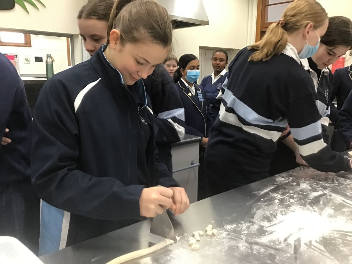 On Friday 15th July, the year 8 Italian students were treated to a pasta making experience. Gianluca a 21 year of chef made “orecchiette” and served them with a delicious “sugo al pomodoro”. He also demonstrated making “cavatelli and fusilli”. Before the girls enjoyed the “orecchiette col sugo” they had a go at making their own.