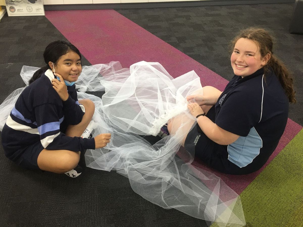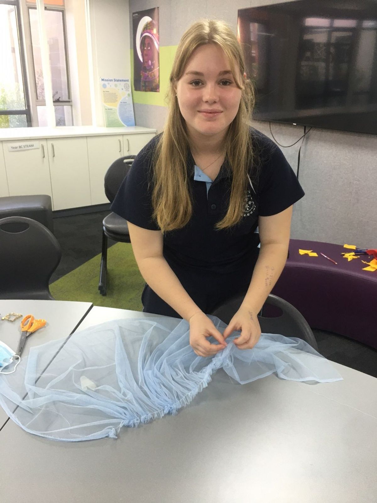 In Year 8 STEAM, we have been looking at and learning about circuits and incorporating LED lights into fashion, our task is to sew LED lights into the garments, we must learn how to make circuits and work out how the LED lights are powered into garments, then sew these into the garment. Each group has a theme for their pieces such as royalty, sea life, and others.