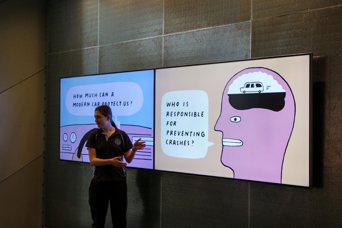 Students also experienced the immersive Road to Zero exhibition space, where they took part in a virtual reality journey travelling from 1970 to 2055. Through interactive displays, they explored the science behind road safety, the latest in vehicle technology and road design, and how we can all contribute to reducing road trauma.